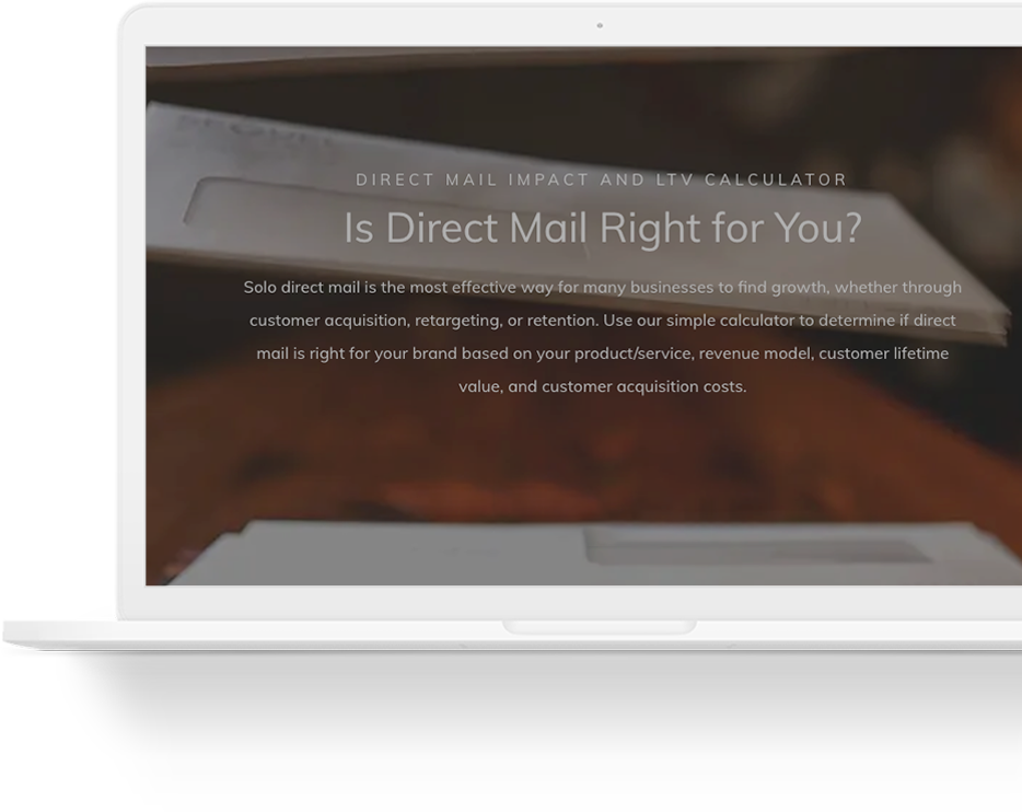 Is direct mail right for your brand, right now? Follow our automated guide to tell us a little about your product or services. We’ll help you determine your customer LTV, and the most profitable way to launch your brand into mailboxes.